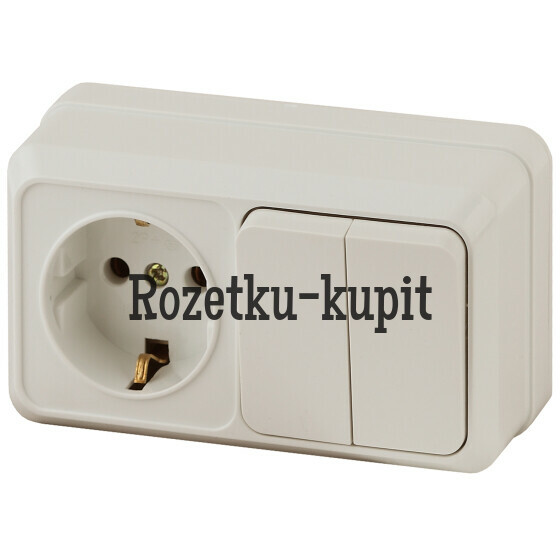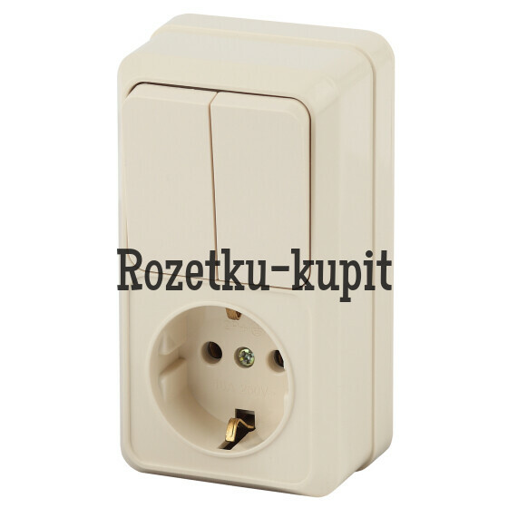 294 у265 уСкидка 29 уВ наличииЭра Б00538752-702-02 Блок розетка с выключателем Intro Quadro 2-702-02 двойным горизонтальный 10А-250В, IP20, ОУ, слоновая кость -