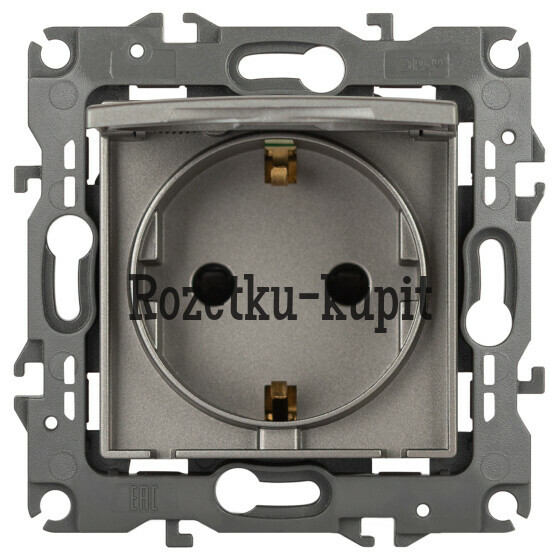 446 у391 уСкидка 55 уВ наличииЭра Б006572212-2103-16 Розетка ЭРА Серия 12 12-2103-16 , 2P+E Schuko со шторками с крышкой, 16А-250В, титан -