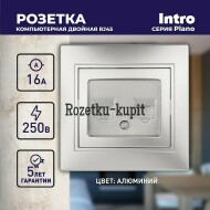 482 у459 уСкидка 23 уВ наличииЭра Б00432431-304-03 Розетка Intro Plano 1-304-03 информационная двойная 2xRJ45, СУ, алюминий -