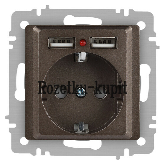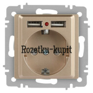 1 027 у901 уСкидка 126 уВ наличииЭра Б00637046-410-08 Розетка Intro Accent 6-410-08 , P+E Schuko со шторками, 16А-250В + 2хUSB, IP20, СУ, бронза -