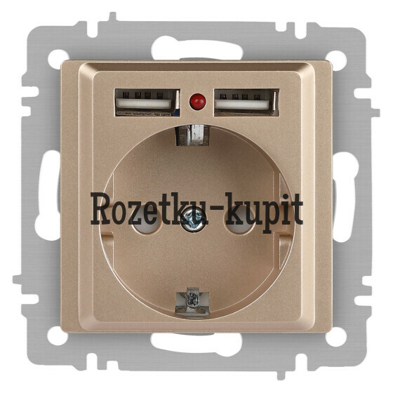 1 018 у901 уСкидка 117 уВ наличииЭра Б00636966-410-04 Розетка Intro Accent 6-410-04 , P+E Schuko со шторками, 16А-250В + 2хUSB, IP20, СУ, шампань -