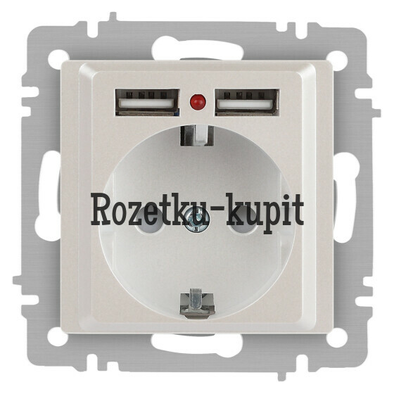 1 036 у901 уСкидка 135 уВ наличииЭра Б00637006-410-06 Розетка Intro Accent 6-410-06 , P+E Schuko со шторками, 16А-250В + 2хUSB, IP20, СУ, перламутр -