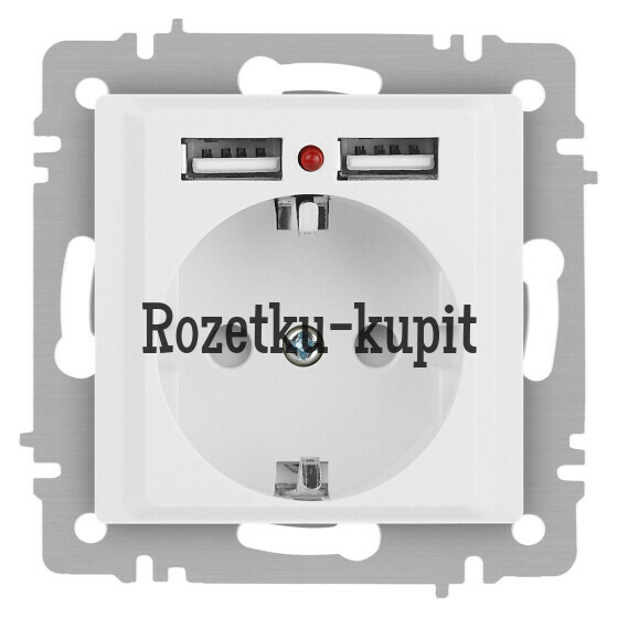 954 у867 уСкидка 87 уВ наличииЭра Б00636896-410-01 Розетка Intro Accent 6-410-01 P+E Schuko со шторками, 16А-250В + 2хUSB, IP20, СУ, белый -