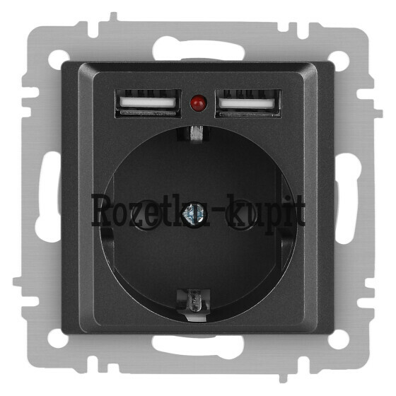 946 у901 уСкидка 45 уВ наличииЭра Б00636986-410-05 Розетка Intro Accent 6-410-05 , P+E Schuko со шторками, 16А-250В + 2хUSB, IP20, СУ, антрацит -