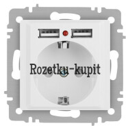 1 009 у901 уСкидка 108 уВ наличииЭра Б00636916-410-01М Розетка Intro Accent 6-410-01М , P+E Schuko со шторками, 16А-250В + 2хUSB, IP20, СУ, белый матовый