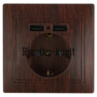 1 183 у1 029 уСкидка 154 уВ наличииЭра Б00539481-410-10 Розетка Intro Plano 1-410-10 с заземлением 2P+E Schuko со шторками, 16А-250В + 2хUSB 5В-2,1А, IP20, СУ, венге -
