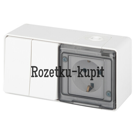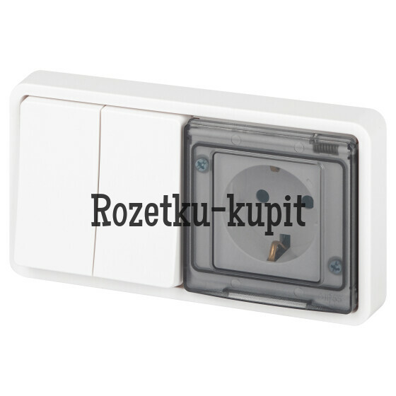 1 803 у1 582 уСкидка 221 уВ наличииЭра Б006327411-7522-01 Блок розетка с выключателем ЭРА Эксперт 11-7522-01 двойной IP55, 16A(10AX)-250В, СУ, белый -