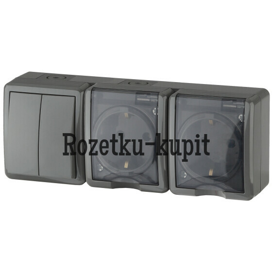 1 467 у1 298 уСкидка 169 уВ наличииЭра Б002767611-7404-03 11-7404-03 ЭРА Блок две розетки+выключатель двойной IP54, 16A(10AX)-250В, ОУ, Эра Эксперт, серый (5/ -