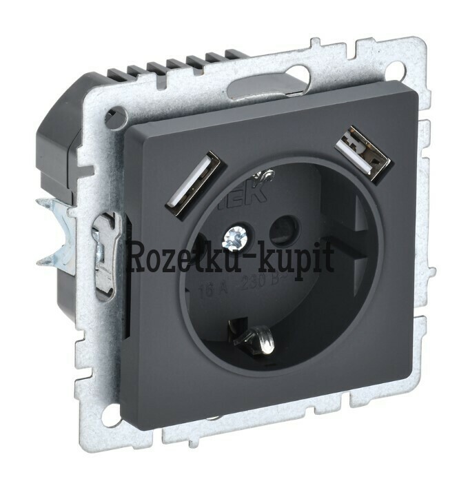 3 556 у3 233 уСкидка 323 уВ наличииiek BR-R14-16-U21-D31-K53BRITE Розетка 1-местная с заземлением с защитными шторками 16А с USB A+A 5В 3,1А РЮш10-2-БрГ графит IEK